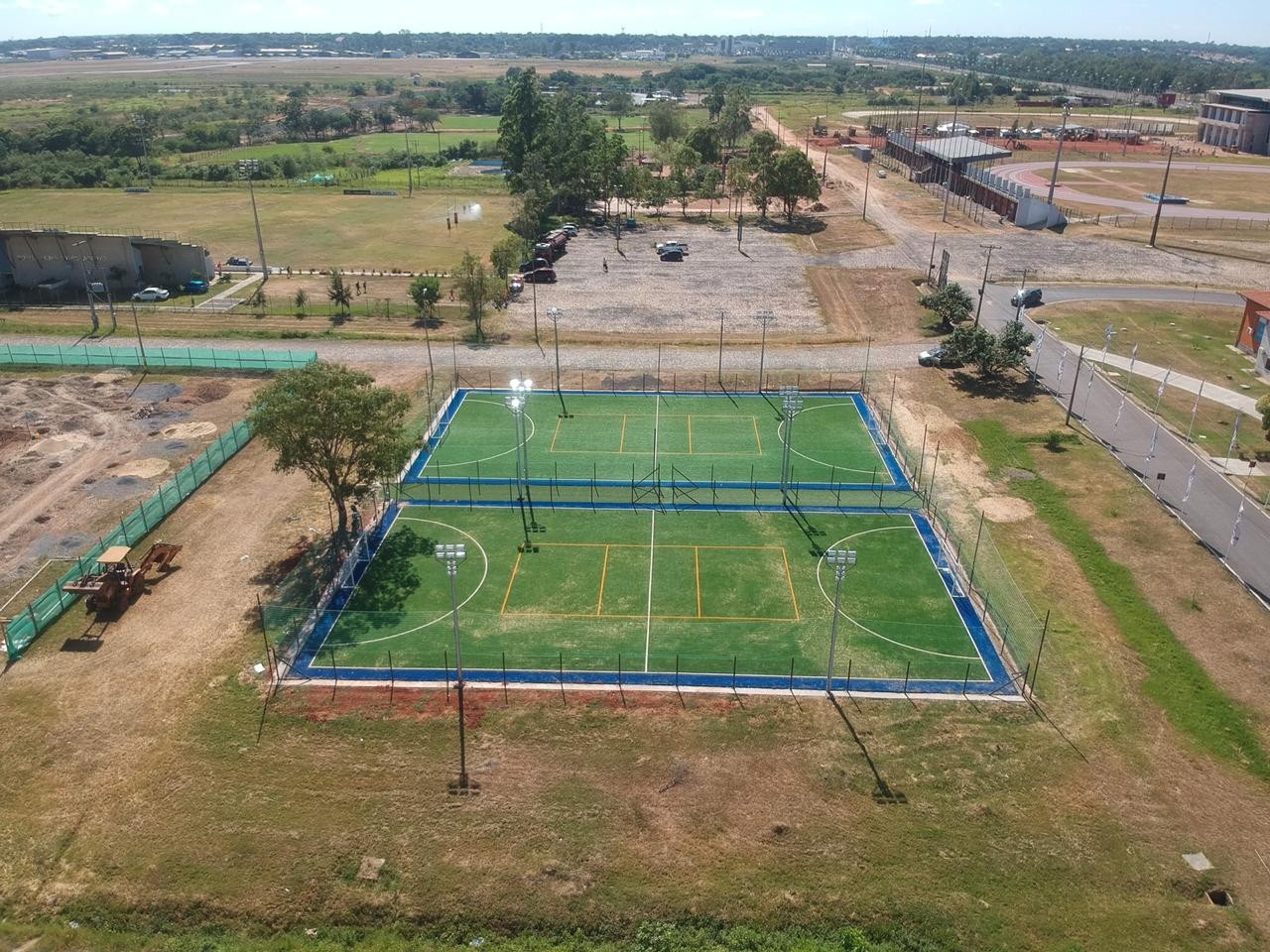 Construcción de 2 canchas sintéticas multiuso de 1.000m2 c/u llave en mano.-